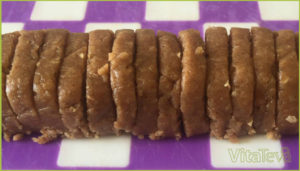Все это перемешайте пульсами в фудпроцессоре. Заверните плотно в целлофан и поставьте в холодильник на несколько часов. Потом нарежьте на небольшие кусочки.