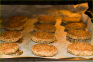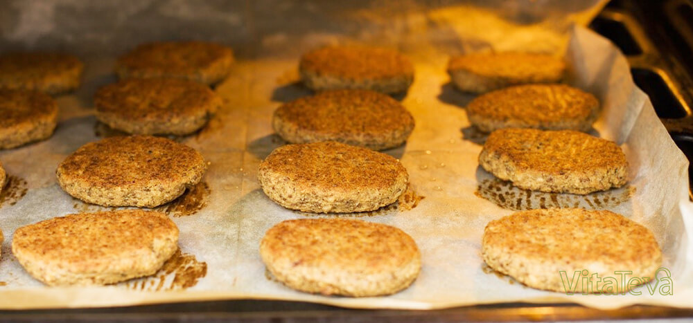 Отварную капусту измельчите и соедините со всеми остальными ингредиентами, включая чиа. Перемешайте в фуд-процессоре. Сформируйте оладушки и выложите на смазанную маслом бумагу для запекания в противень.