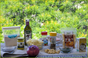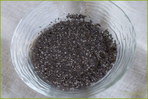 Соедините семена чиа с водой и оставьте на 30-60 минут. Фиолетовую луковицу мелко нарежьте и потушите до прозрачности.